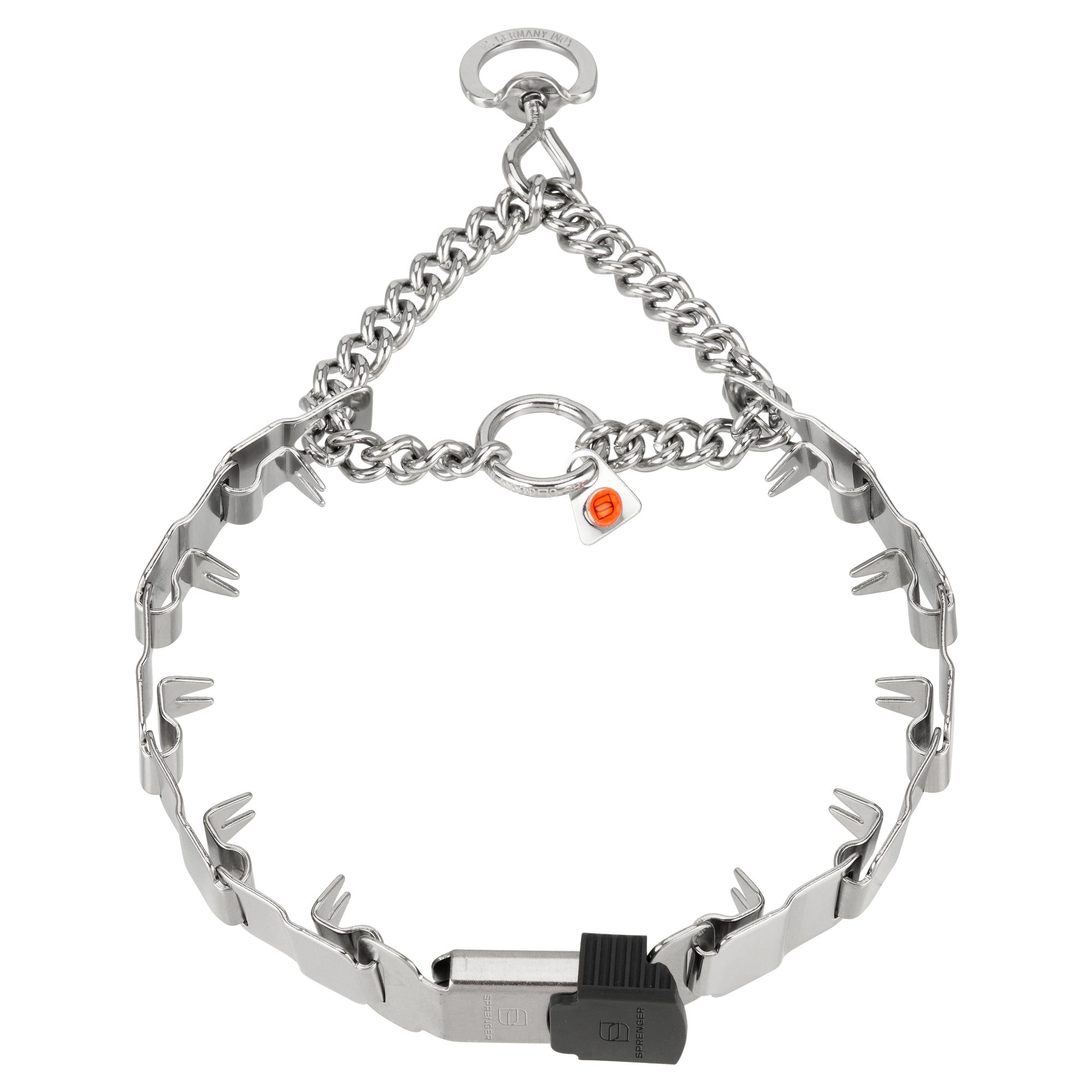 Die meisten NeckTech verfügen über den praktischen ClicLock Verschluss, der ein schnelles und sicheres An- und Ablegen ermöglicht, ohne das die Kette über den Kopf des Hundes gezogen werden muss.